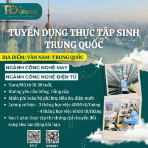 – Nam/Nữ tuổi từ 18 – 38 tuổi, sức khỏe tốt, không yêu cầu tiếng Trung, không yêu cầu bằng cấp