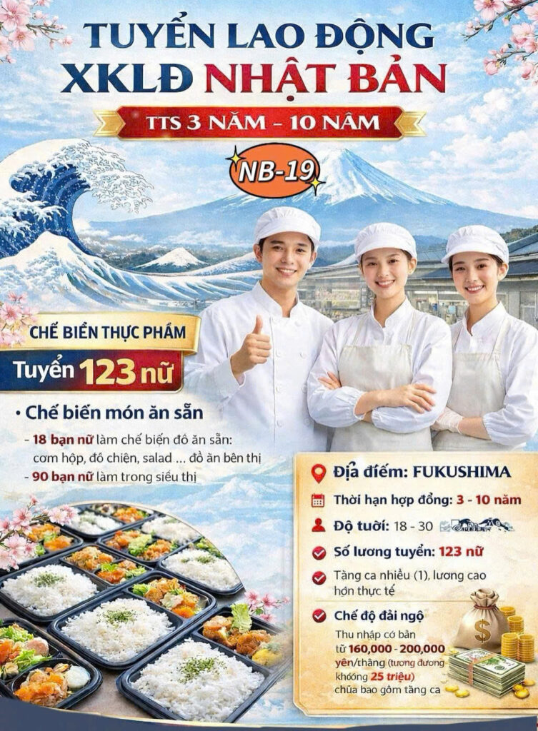 📍 Địa điểm làm việc: Fukushima, Nhật Bản