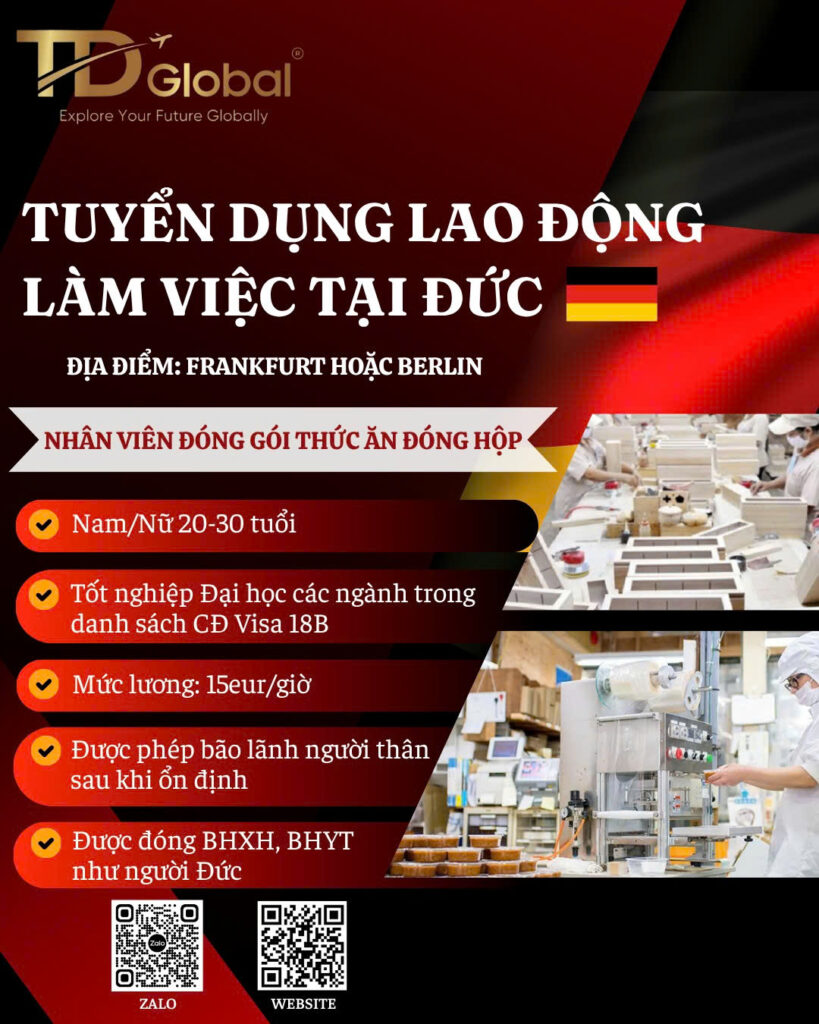 • Không yêu cầu chứng chỉ tiếng Đức (biết Đức/Anh là lợi thế)