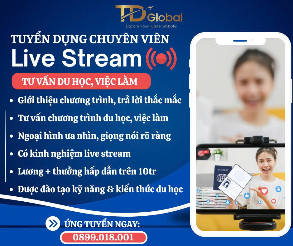 - Được đào tạo bài bản về kỹ năng livestream và kiến thức du học.