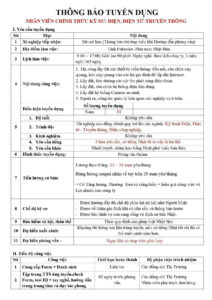 – Nam, tốt nghiệp Cao đẳng chính quy trở lên ngành: Kỹ thuật điện, điện tử, truyền thông, điện công nghiệp