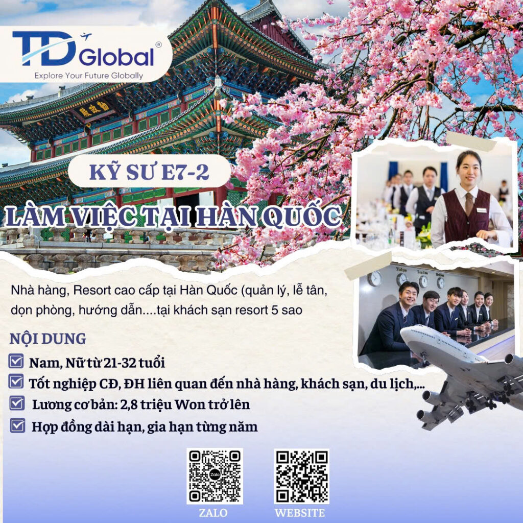 ✨ Vị trí làm việc: Nhà hàng, khách sạn, resort 5 sao tại Hàn Quốc (quản lý, lễ tân, dọn phòng, dịch vụ, hướng dẫn…).