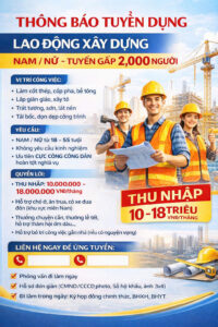 🔥 TUYỂN GẤP LAO ĐỘNG XÂY DỰNG – ĐI LÀM NGAY 🔥 👉 Nam/Nữ | Tuyển số lượng lớn