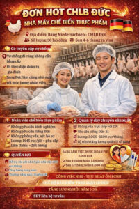 🔥🔥 ĐƠN HOT CHLB ĐỨC – NHÀ MÁY CHẾ BIẾN THỰC PHẨM (GÀ) 🔥🔥 🐔🇩🇪 CÔNG VIỆC NHẸ – LƯƠNG ỔN ĐỊNH – PHÚC LỢI CAO 🇩🇪
