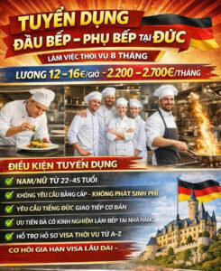 🇩🇪 TUYỂN DỤNG LAO ĐỘNG THỜI VỤ 8 THÁNG TẠI ĐỨC