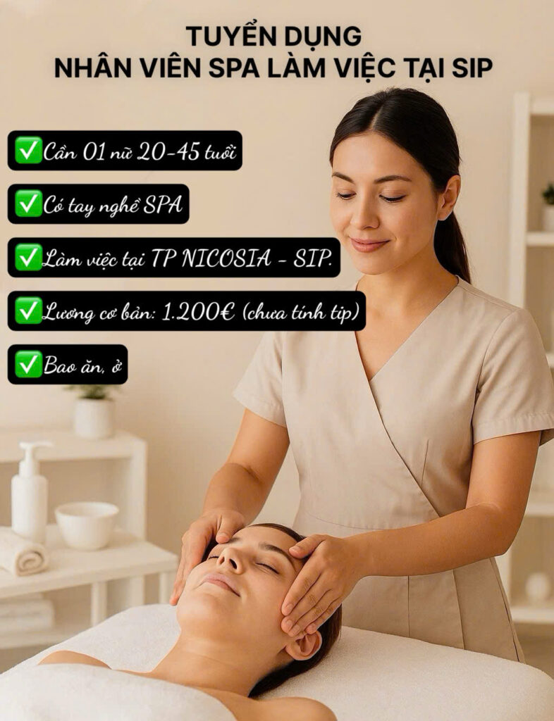 *Cần tuyển gấp 01 nữ 20-45 tuổi đi làm SPA tại TP NICOSIA – SIP