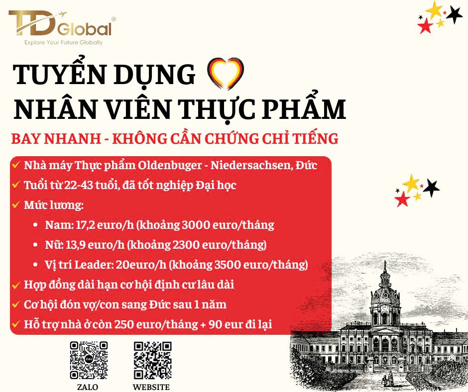 Địa điểm làm việc: Nhà máy Thực phẩm Oldenburger – bang Niedersachsen, Đức