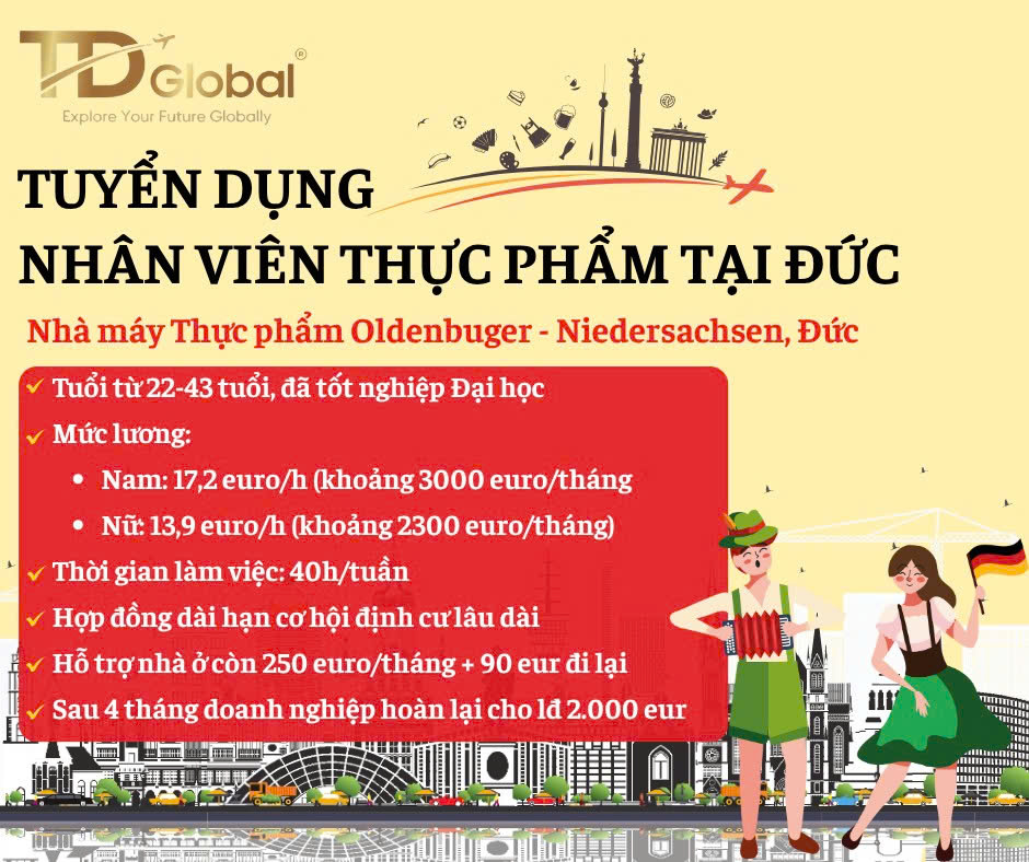 ✅ Không yêu cầu kinh nghiệm (sẽ được đào tạo khi sang Đức)